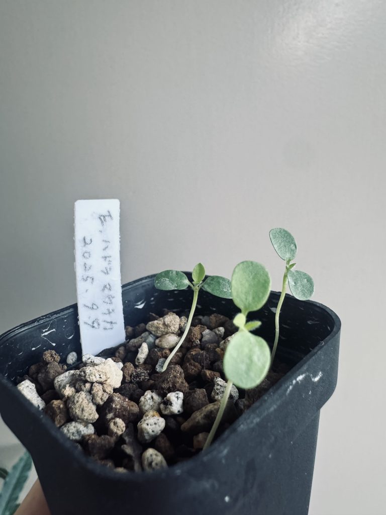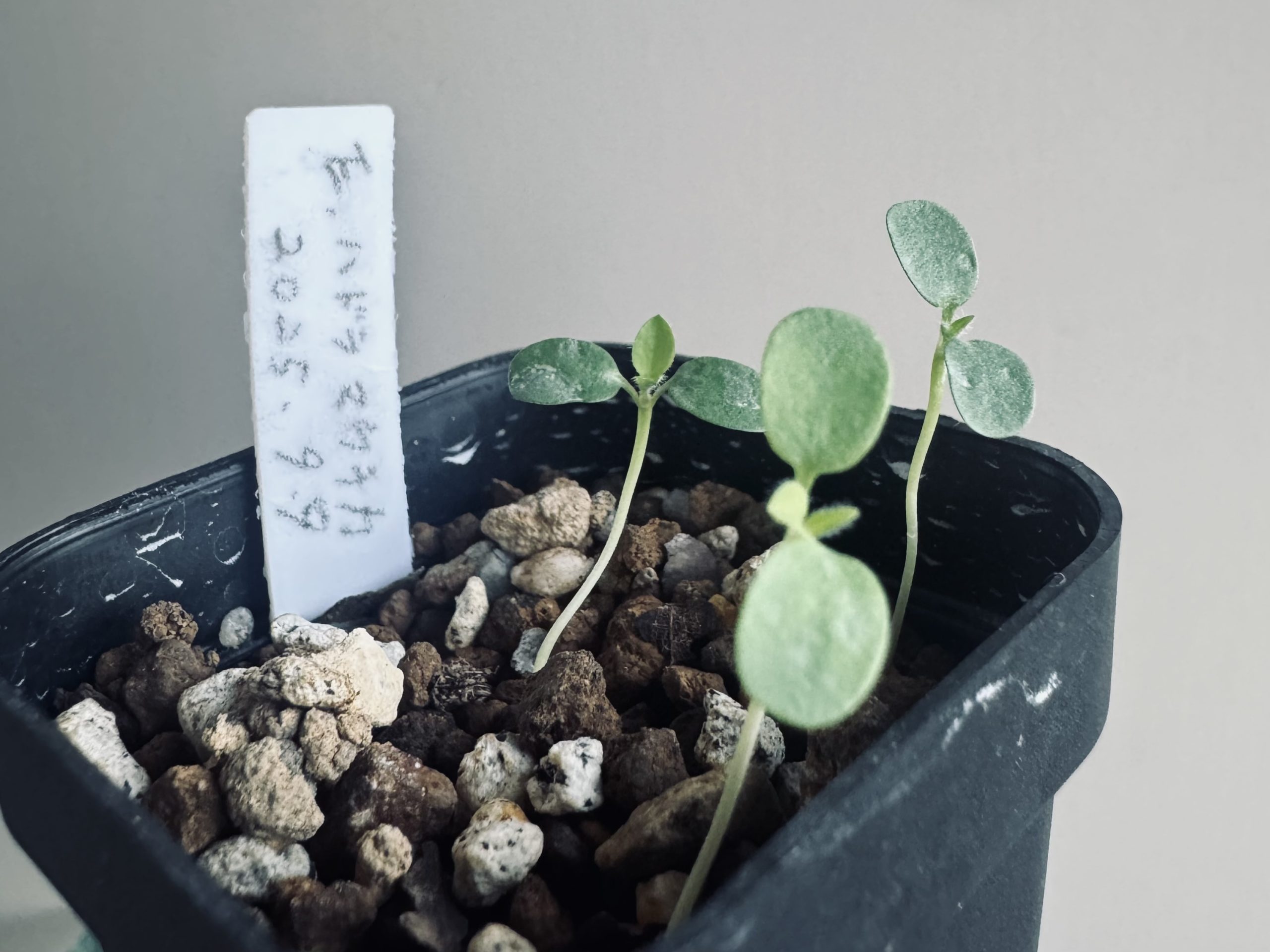 ユーフォルビア・ハウドマウチカ、初挑戦の実生は5粒中3粒発芽でまずまずのスタート。